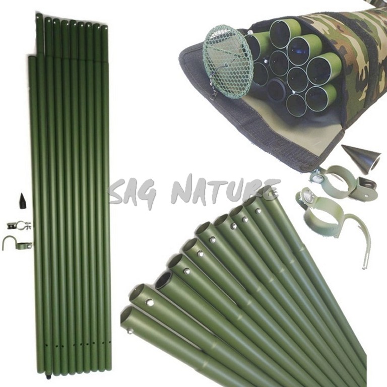 1005006 – KIT 10 ASTE IN ALLUMINIO PER COLOMBACCIO – 12 METRI – DIAM. 40MM + FODERO + RACCHETTA + PUNTALE + CARRUCOLA + GANCIO – SAG NATURE