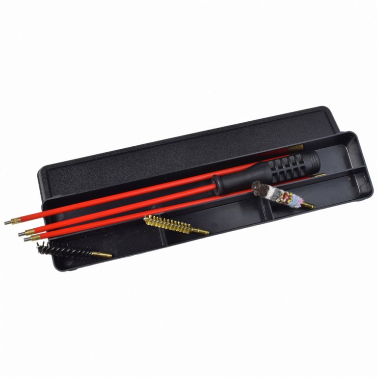 1301132 – KIT PULIZIA CARABINA FLOBERT E ARIA COMPR. SCAT. PLAST. C/BACCHET. ACCIAIO PLASTIF. A 3 PEZZI, SCOVOLI LANA, SETOLA, BRONZO