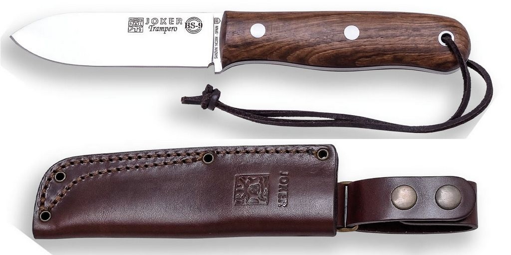 1201242 – COLTELLO BUSHCRAFT E CACCIA JBS9 TRAMPERO ACCIAIO SANDVIK 14C28N MANICO NOCE LAMA 10 CM PESO 185 GR – COMPLETO DI FODERO PELLE – JOKER CN113