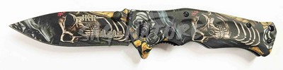 1203246 - COLTELLO PIEGHEVOLE ASSISTITO A MOLLA CON MANICO IN ALLUMINIO E MOTIVI GHOST BIKER LAMA 8,5 CM - JKR666