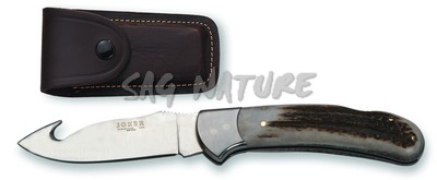 1201535 – COLTELLO COCKER CON SCUOIATORE CON MANICO IN CORNO DI CERVO LAMA 9 CM PESO 135 GR – JOKER NC50