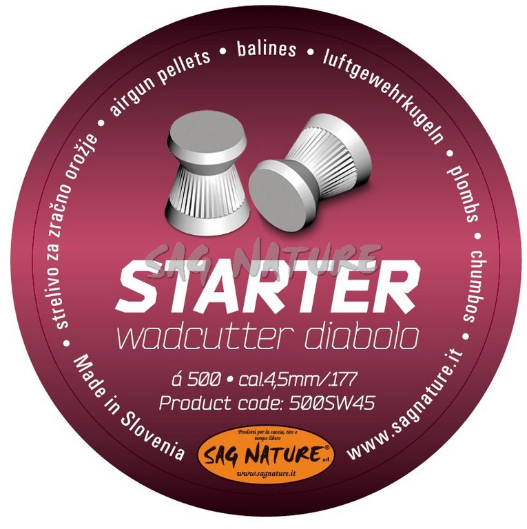 0502001 – 500 PALLINI 4,50 MM STARTER WADCUTTER DIABOLO – PALLINO PER ARIA COMPRESSA PIATTO 0,45 GRAMMI – LAOC