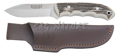 1201003 – COLTELLO CON MANICO IN CORNO DI CERVO LAMA IN MOLIBDENO VANADIO 9,5 CM PESO 188 GR – COMPLETO DI FODERO CUOIO – JOKER CC85