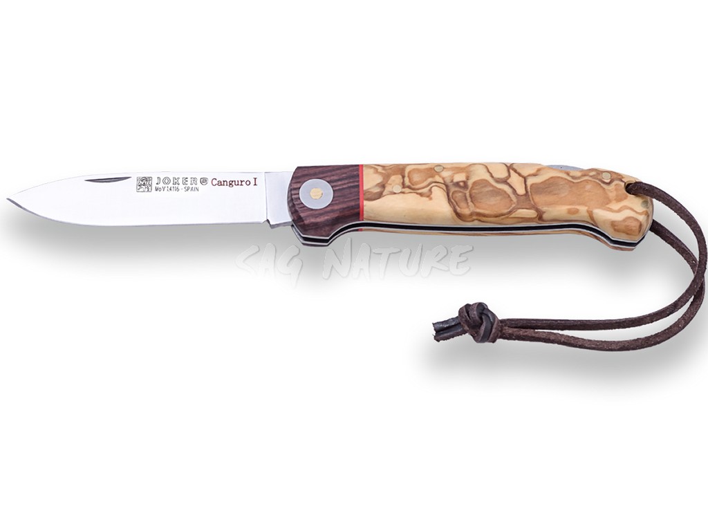 1201525 – COLTELLO DA CACCIA CANGURO I CON MANICO IN OLIVO E VIROLA IN PALISSANDRO LAMA 8,5 CM PESO 90 GR – JOKER NO129